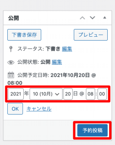 チェックOKもらったら、コピペで本番環境にうつして、20日で予約投稿をします。